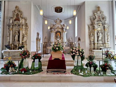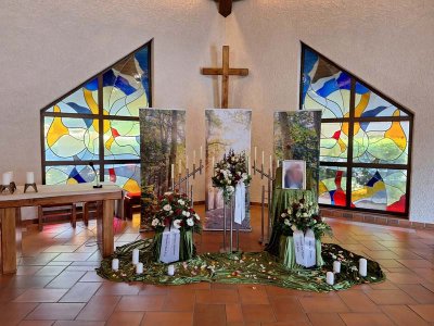 Es kann vorab eine Trauerfeier vor Ort mit Urne erfolgen.