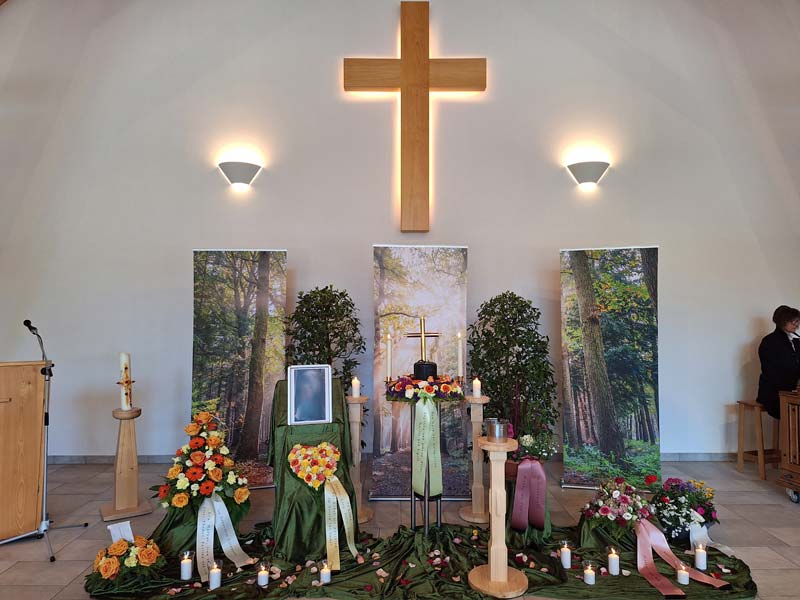 Bei einer Trauerfeier mit Urne erfolgt die Beisetzung der Urne im Anschluss. Dadurch bleibt die Einheit von Trauerfeier und Beisetzung gewahrt.